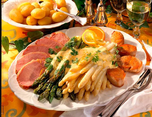 Spargelplatte Mit Zweierlei Fleisch