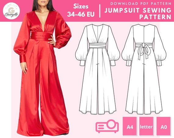 Olivia Palazzo Jumpsuit Sewing Pattern 34 36 38 40 42 44 46 Etsy Osterreich